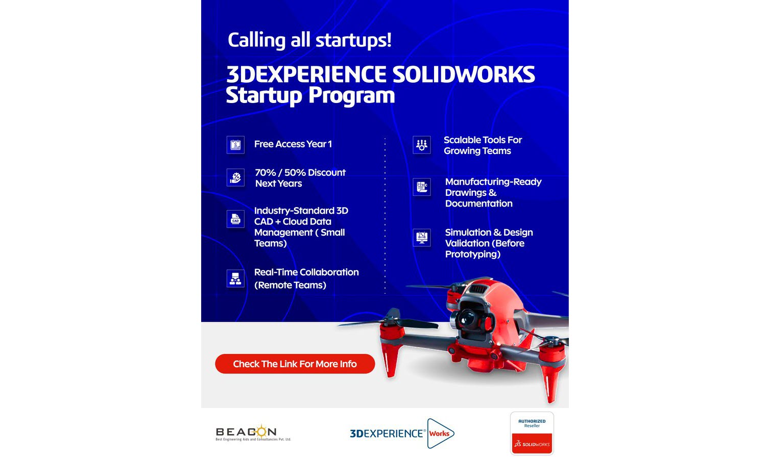 BEACON India is an authorized partner supporting the SOLIDWORKS Startup Program in India. Beyond software access, BEACON India provides: