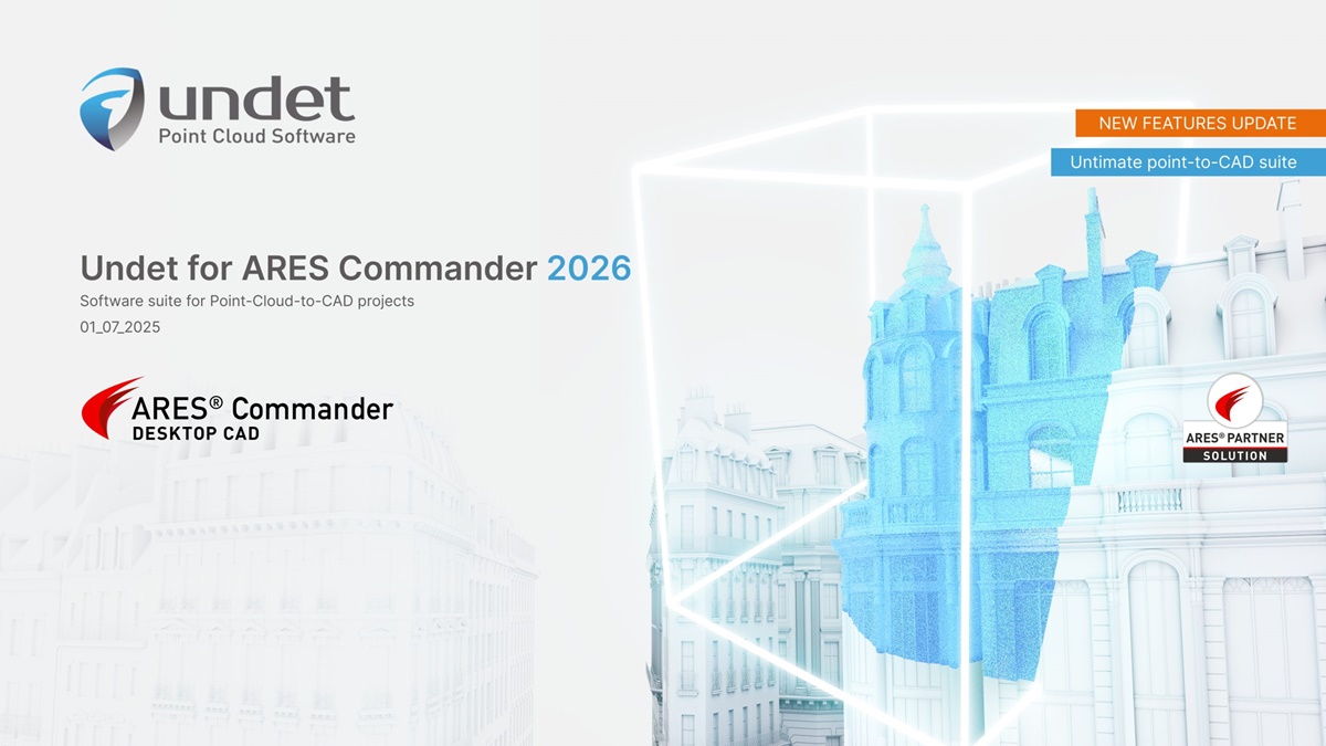 VILNIUS, Lithuania, Aug 11, 2025 – Undet is pleased to introduce Undet Suite 2026! The ultimate software suite for faster and cost-effective CAD deliverables. With the new annual release of Graebert ARES Commander 2026, we are glad to introduce updated version of Undet for ARES 2026. It is not only a compatibility update, but also a release of new version that contains great new features! By combining the powerful Undet add-on tools with ARES Commander CAD simplicity, we offer you an intuitive workflow to create 2D drawings based on precise as-built point cloud data quickly and easily.